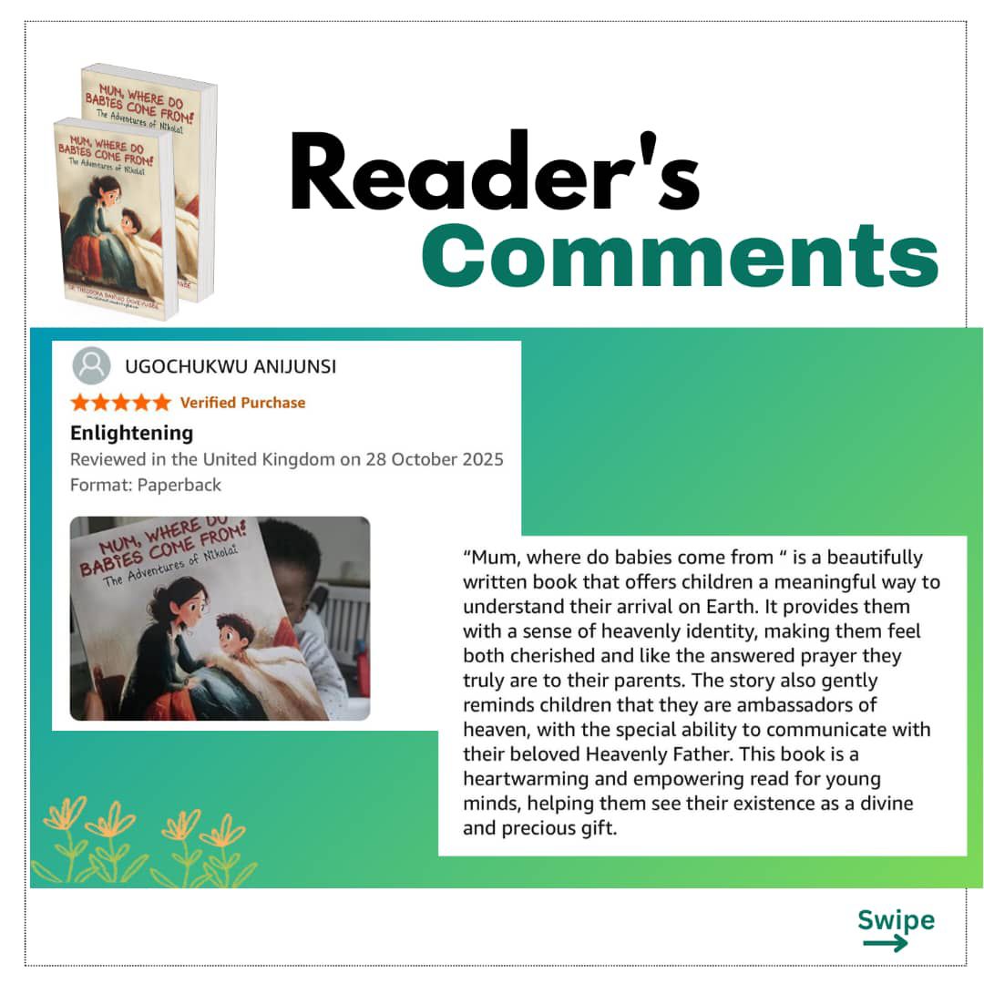This is not a book about the physical process of how children are born. Rather, it is a book that helps children discover who they are in Christ. it gently introduces them to the truth that before they ever entered this world, they came from a Kingdom beyond it—a heavenly city where their Creator, the Maker of heaven and earth, is Father.